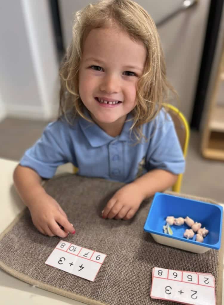 Sensory manipulation of numbers up to 9999, mastery of the 4 operations and discovering geometry.